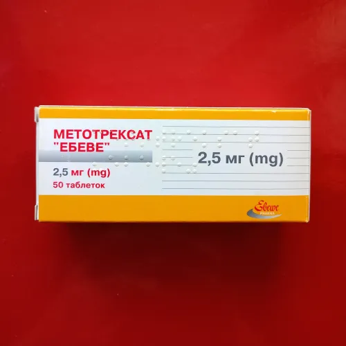 Метотрексат Ебеве – антагоніст фолієвої кислоти, інгібує дигідрофолатредуктазу (ДГФР), порушуючи синтез пуринів/піримідинів для ДНК/РНК. Забезпечує цитостатичний ефект, пригнічуючи поділ клітин (злоякісних та імунних), синовиальне запалення. Застосовується перорально в онкології, ревматології, дерматології під контролем лікаря (онколог, ревматолог). Виробник: EBEWE Pharma Ges.m.b.H. Nfg. KG, Австрія. Реєстрація UA/9991/01/01. Таблетки блідо-жовті, круглі, з гравіюванням "MTX 2.5".